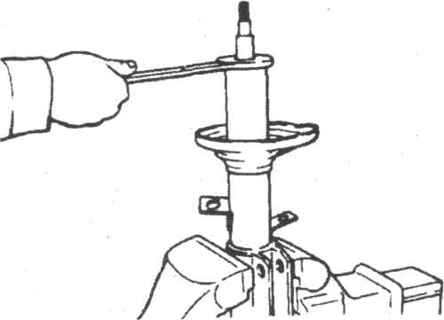 13.6. Амортизатор стойки подвески - замена1. Снимите стойку и пружину с автомобиля. Зажмите стойку в тисках.