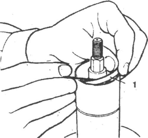 8. Снова зажмите стойку в тисках и снимите уплотнительное кольцо со стойки (5.8). Достаньте поршень.