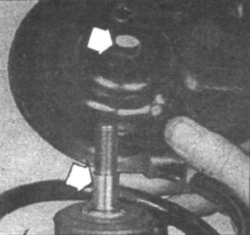5.4б Снимите изолятор и верхнее седло пружины со стойки